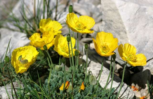 At the summit are small poppies more commonly found in the frozen solitudes of Greenland!