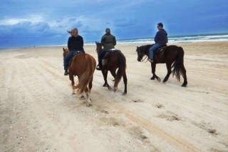 And we mount Levi and Tonka on an Equine Adventures horseback ride through the Buxton Woods Coastal Reserve and along the Atlantic on Frisco Beach.