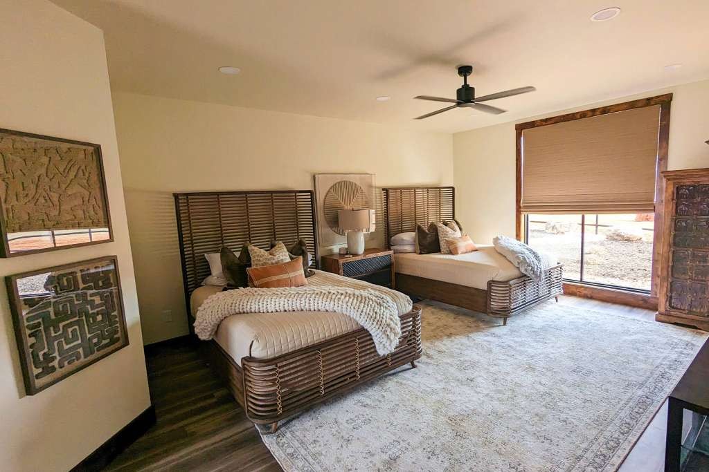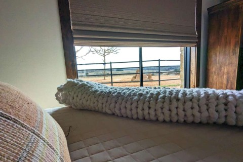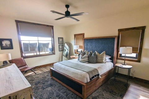 I was giddy at the chance to feed giraffes—the younger ones are especially feisty—and to touch a living rhino. For guests who dream of deeper immersion, the Giraffe Suite is the pinnacle. Set within the heart of Longneck Manor's state-of-the-art giraffe barn, this 1,200-square-foot retreat accommodates up to four guests across the second level of the 10,000-square-foot structure. Floor-to-ceiling windows frame the stalls below, placing guests nearly nose to nose with these gentle giants. A full kitchen, generous living space, and a dedicated climate-control system ensure quiet comfort without disturbing the animals.