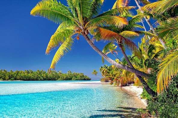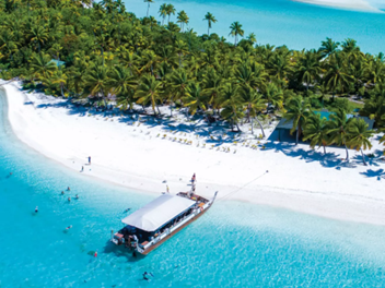 Aitutaki Island has a vast lagoon encircled by coral reefs and small, sandy islets.