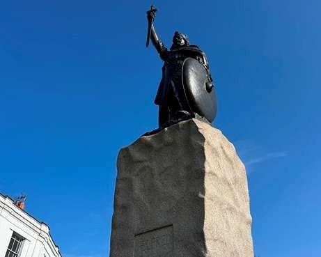 Walking into Winchester, from one of the long-stay car parks, the first thing to catch the eye is likely to be the five metres high statue of Alfred the Great (849–899) on an eight metres plinth of white Cornish granite.