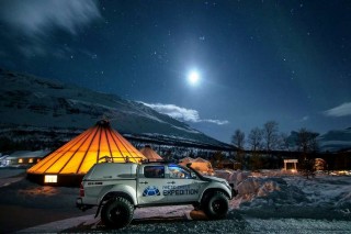 The expedition starts at the Camp Tamok wilderness center, off on the coast of Norway, and a first taste of off road driving across pristine snow and ice covered Arctic wilderness.